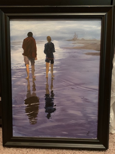 To eliminate minor problems of this sort you may wish to use one of two features on your iPhone. The first involves going to “Edit” on your Photos screen, then clicking on the “Crop and Straighten” command. There should be three different “Straighten” icons at the bottom. Manipulating these can correct for minor flaws in the position of the image. Concentrate on the work alone. You may include the frame if you wish, or crop it out.
